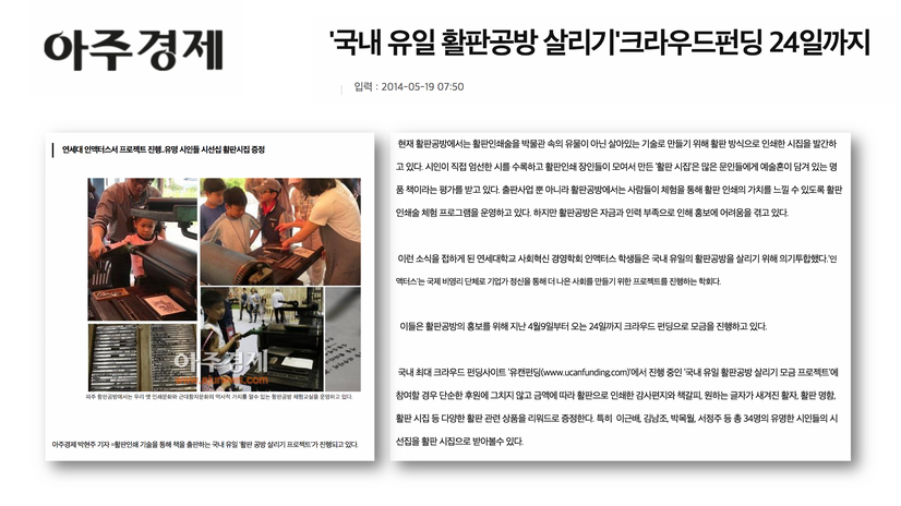 각종 프로젝트의 활발한 활동 소식을 국내 다양한 언론 미디어를 통해 접해보실 수 있습니다.